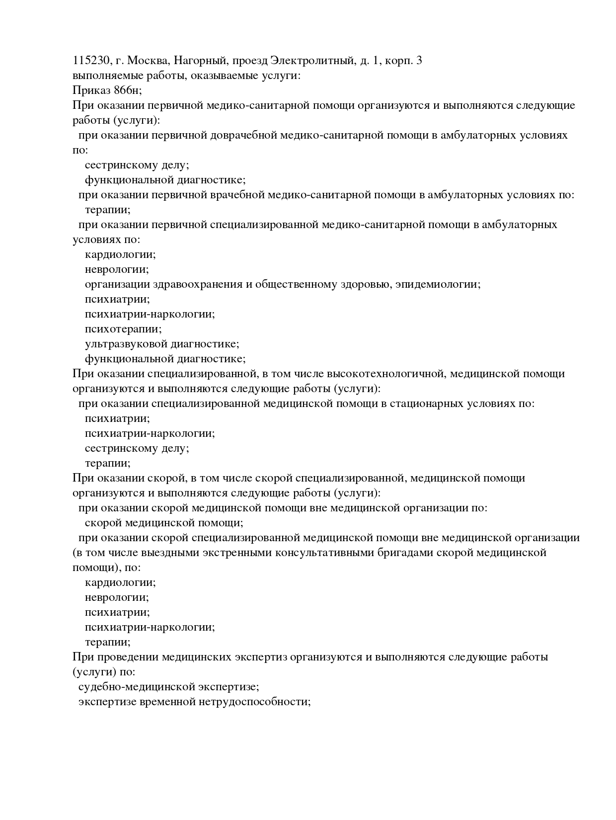 Услуги психиатрической клиники
