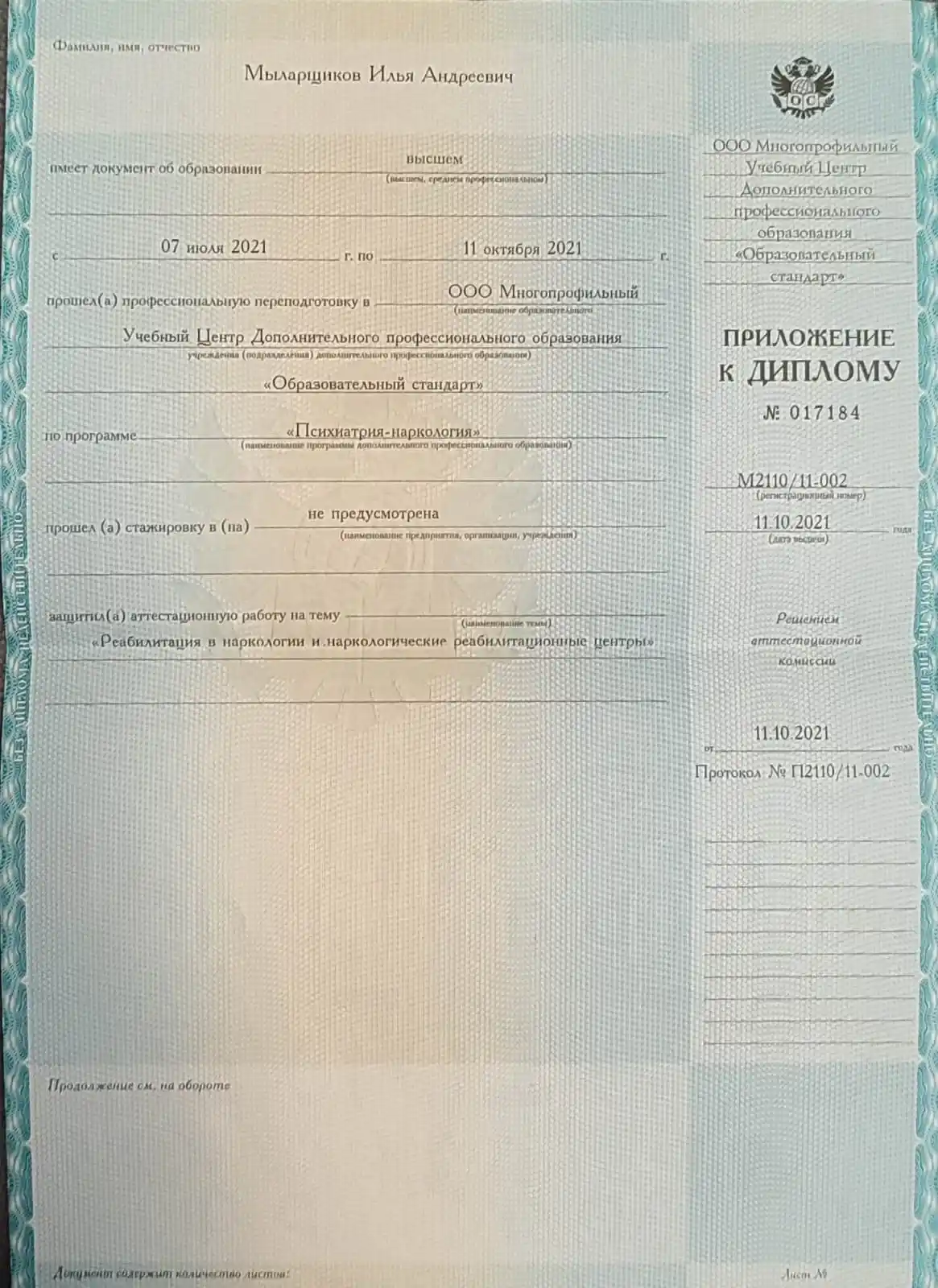 - Повышения квалификации по специальностям "психиатрия" и "психитария-наркология".