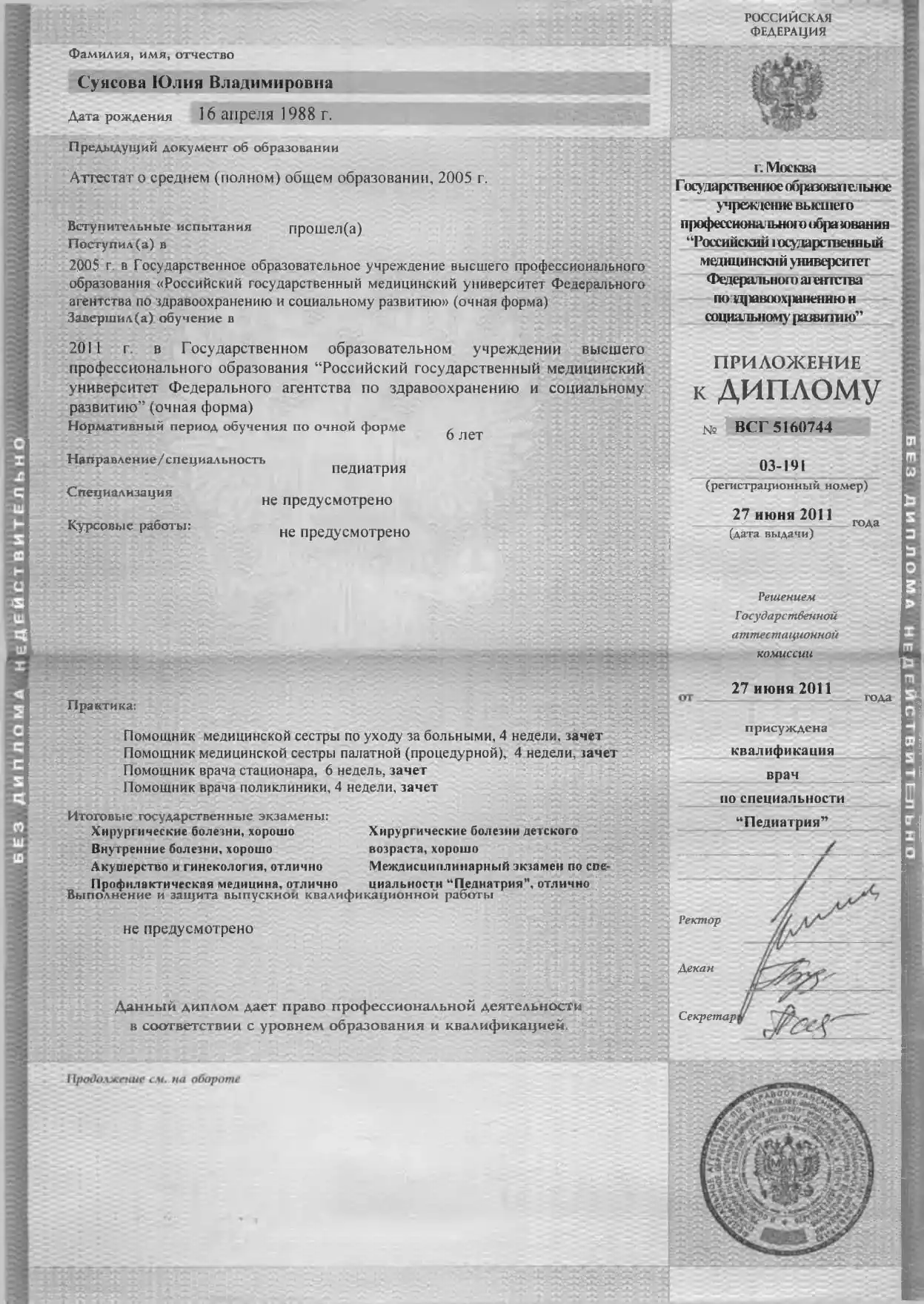 Интернатура по специальности "педиатрия" (РГМУ им Н.И. Пирогова)