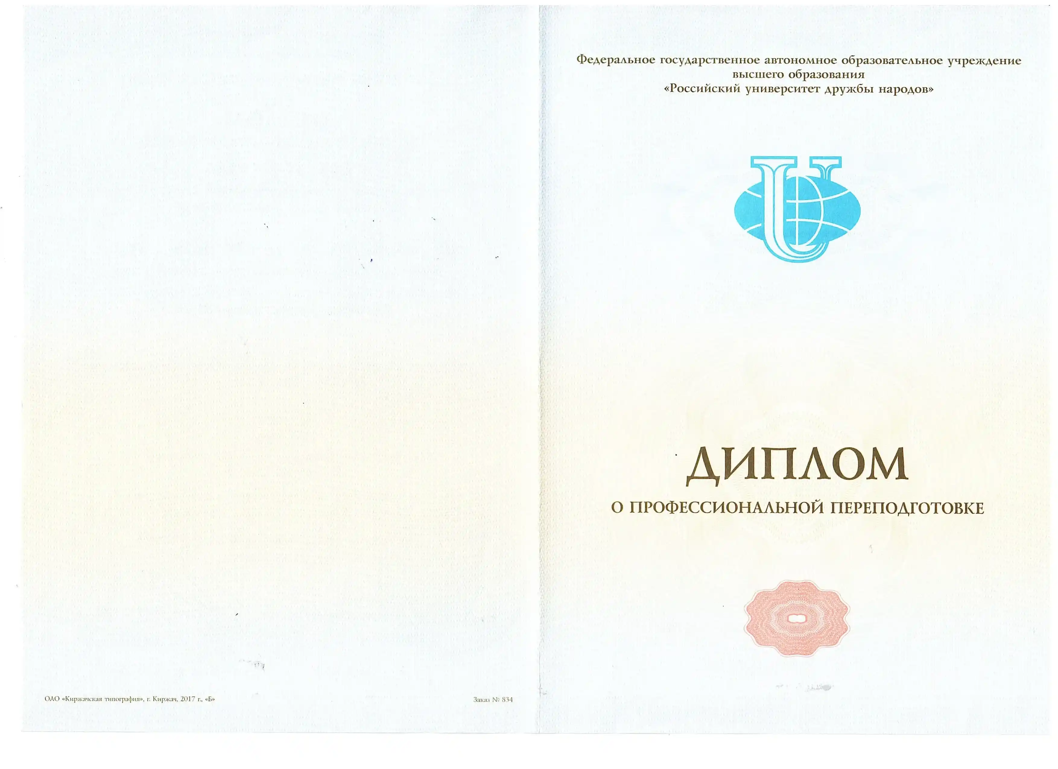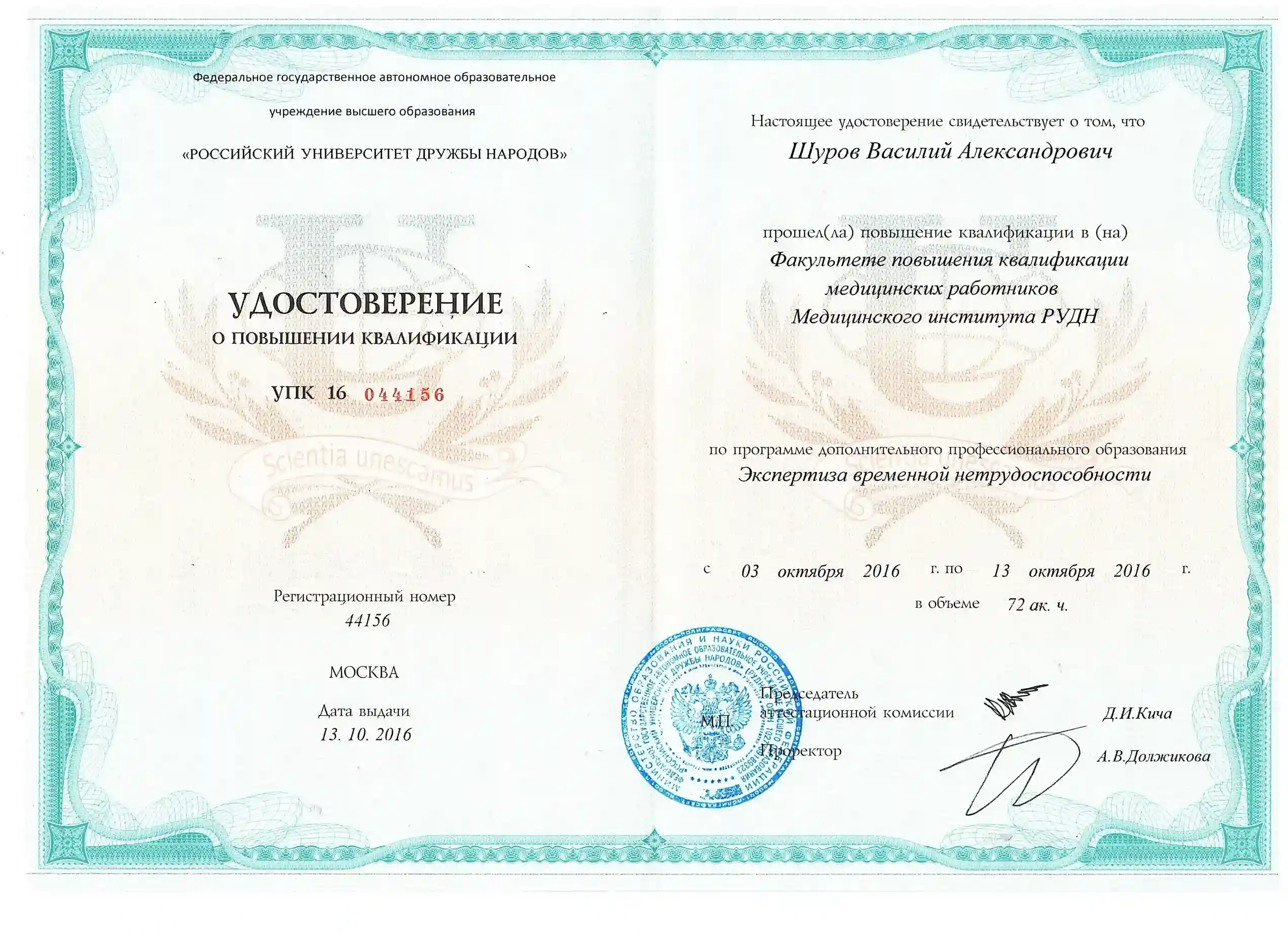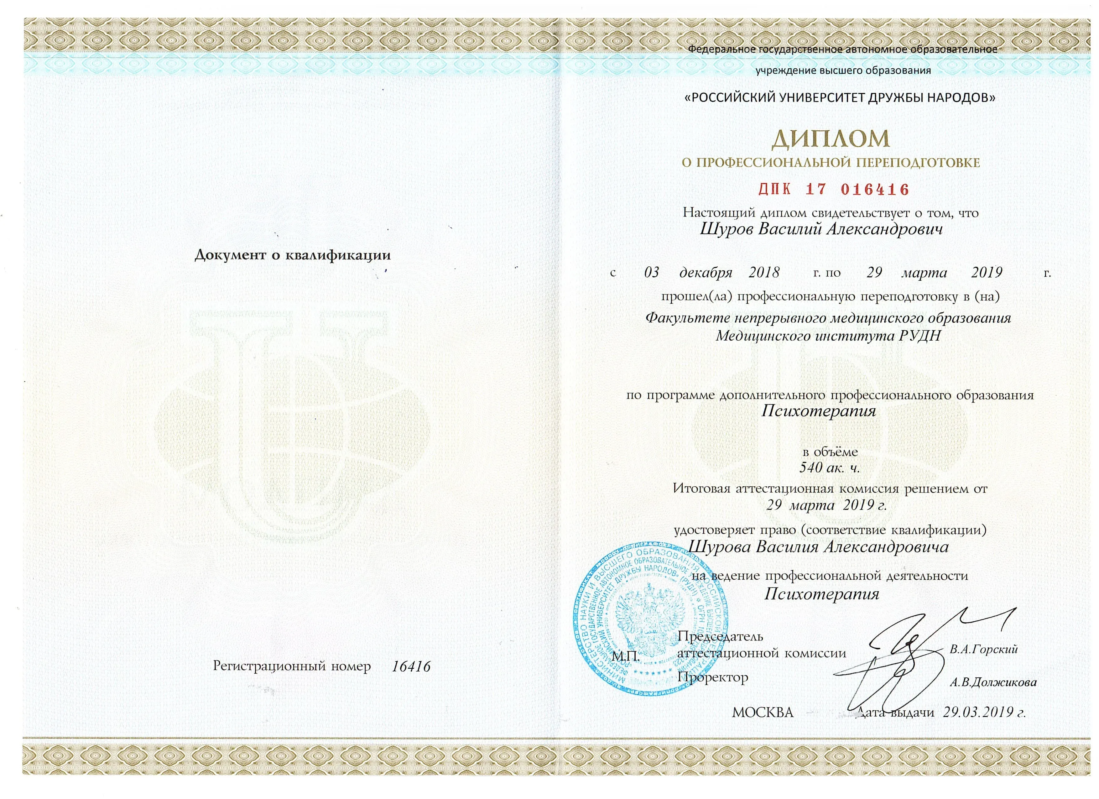 Диплом по специальности "Лечебное дело", Первый Московский государственный медицинский университет имени И. М. Сеченова