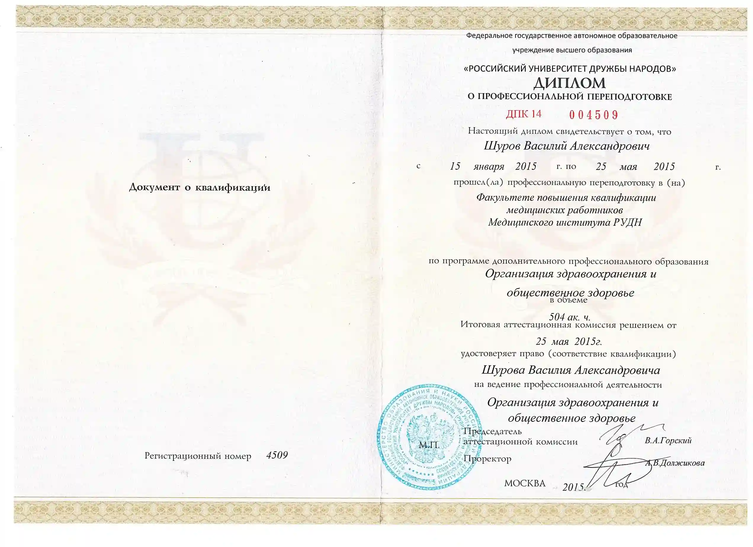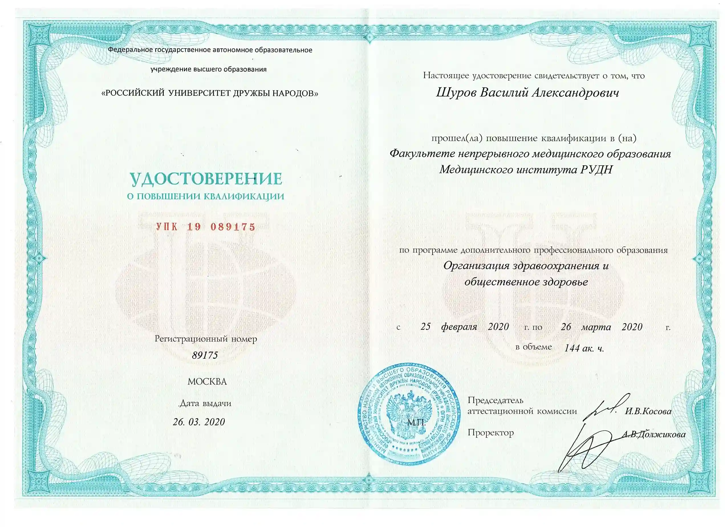 "Организация здравоохранения и общественное здоровье", Российский университет дружбы народов
