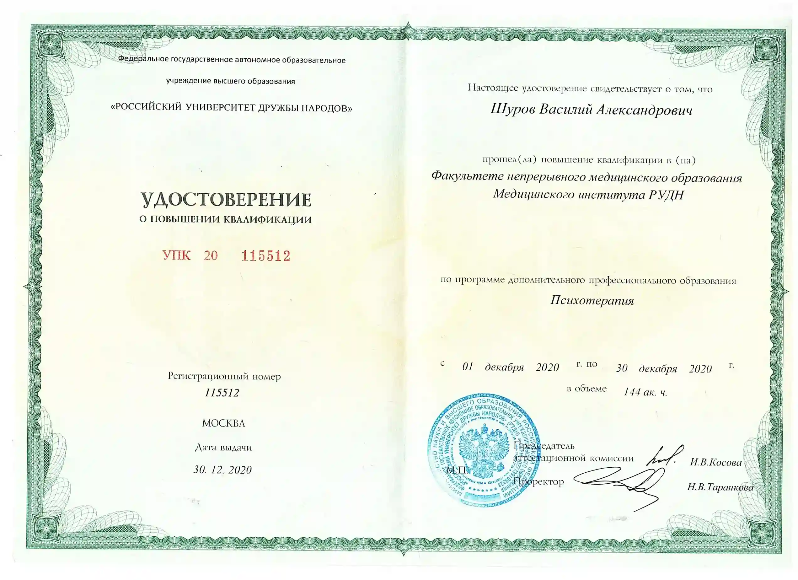 "Психиатрия", Российский университет дружбы народов